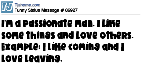 X is I'm a passionate man. I like some things and love others. Example: I like coming and I love leaving.