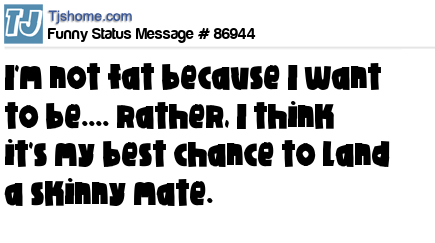 X I'm not fat because I want to be.... rather, I think it's my best chance to land a skinny mate.