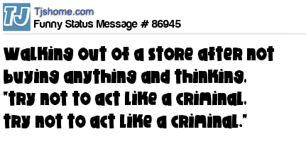 X Walking out of a store after not buying anything and thinking, "try not to act like a criminal, try not to act like a criminal."