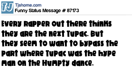 X  Every rapper out there thinks they are the next Tupac. But they seem to want to bypass the part where Tupac was the hype man on the Humpty dance.