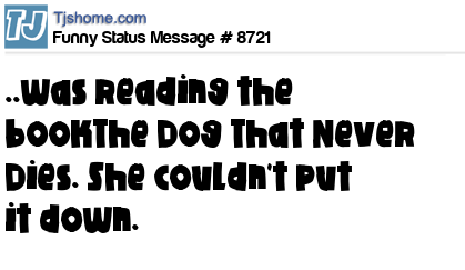 X ..was reading the bookThe Dog That Never Dies. She couldn't put it down.