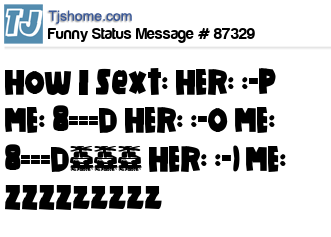 X How I Sext: HER: :-P ME: 8===D HER: :-O ME: 8===D~~~ HER: :-) ME: ZZZZzzzzz