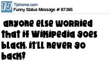 - # 87383 Uh oh. Wikipedia is going black that means it's never coming back.