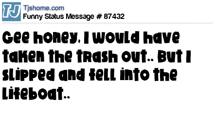 X Gee honey, I would have taken the trash out.. But I slipped and fell into the lifeboat..