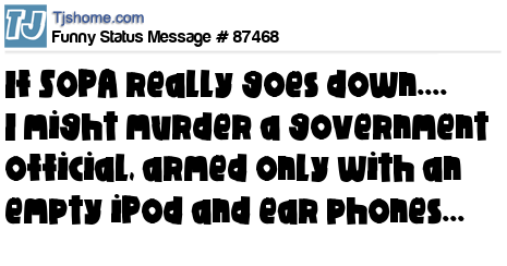 X says If SOPA really goes down.... I might murder a government official, armed only with an empty iPod and ear phones...