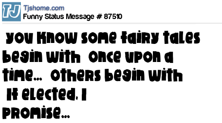 - # 28306 Little girl asked her father,do all fairy tales begin with Once upon a time?The father replied,No, some begin with - If elected I promise..