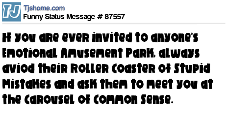 X is If you are ever invited to anyone's Emotional Amusement Park, always aviod their Roller Coaster of Stupid Mistakes and ask them to meet you at the Carousel of Common Sense.