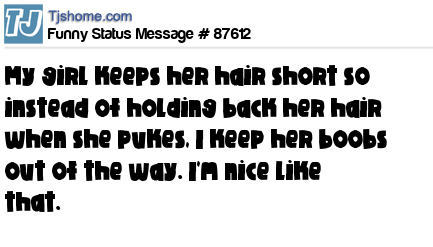 X My girl keeps her hair short so instead of holding back her hair when she pukes, I keep her boobs out of the way. I'm nice like that.