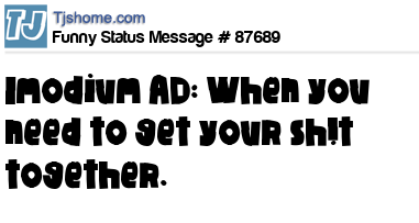 - # 69853 The guy in line in front of me has flowers, condoms, mints, deodorant, and Champagne. It's no secret what he's up to... Whereas my items are less revealing... toilet paper, Perpetration H, Imodium A-D, and stain remover.