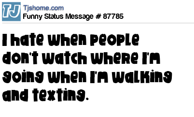 X says I hate when people don't watch where I'm going when I'm walking and texting.