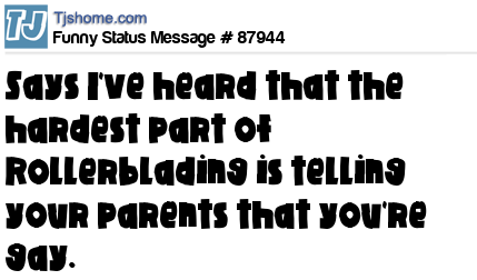 - # 87808 I've heard that the hardest part of Rollerblading is telling your parents that you're gay.