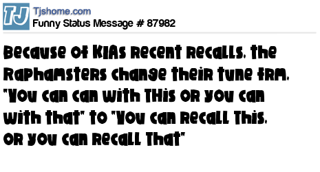X says Because of KIAs recent recalls, the Raphamsters change their tune frm, "You can can with THis or you can with that" to "You can recall This, or you can recall That"