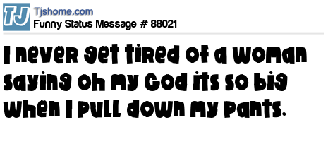 X is I never get tired of a woman saying oh my God its so big when I pull down my pants.