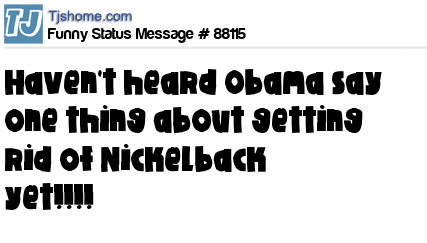 X is Haven't heard Obama say one thing about getting rid of Nickelback yet!!!!