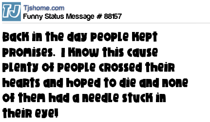 X is Back in the day people kept promises. I know this cause plenty of people crossed their hearts and hoped to die and none of them had a needle stuck in their eye!