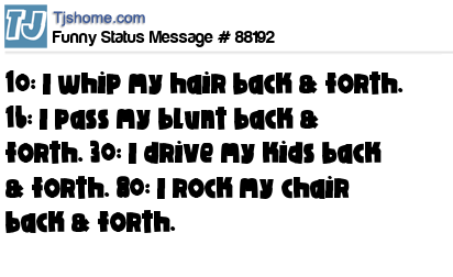 - # 115848 Age 11: “I whip my hair back & forth!” Age 27: “I drive my kids back & forth!” Age 72: “I rock my chair back & forth!”