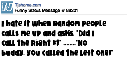X says I hate it when random people calls me up and asks, "Did I call the right #?" ........"No buddy, you called the Left one!"