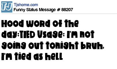 X  Hood word of the day:TIED Usage: I'm not going out tonight bruh, I'm tied as hell