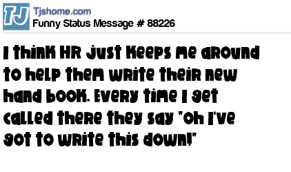 X I think HR just keeps me around to help them write their new hand book. Every time I get called there they say "oh I've got to write this down!"