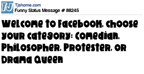 X Welcome to Facebook, choose your category: Comedian, Philosopher, Protester, or Drama Queen