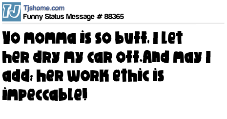 X says Yo momma is so buff, I let her dry my car off.And may I add; her work ethic is impeccable!