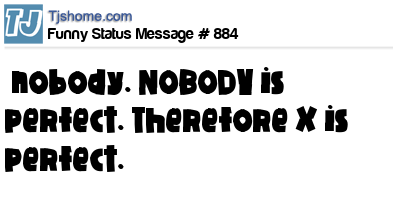 X is nobody. NOBODY is perfect. Therefore X is perfect.