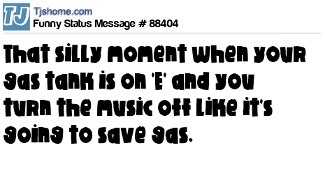 X says That silly moment when your gas tank is on 'E' and you turn the music off like it's going to save gas.