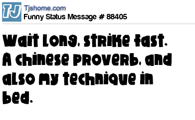 X says Wait long, strike fast. A chinese proverb, and also my technique in bed.