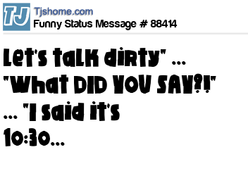 - # 87543 "Let's talk dirty" ... "What DID YOU SAY?!" ... "I said it's 10:30...
