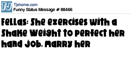 X says Fellas: She exercises with a Shake Weight to perfect her hand job, marry her