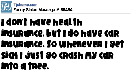 - # 88501 Just figured a way people with no healthcare insurance but do have car insurance can enjoy the same benefits .... Whenever your sick....just crash your bike ...car or truck into a tree