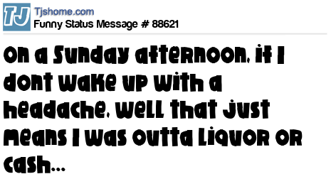 X On a Sunday afternoon, if I dont wake up with a headache, well that just means I was outta liquor or cash...