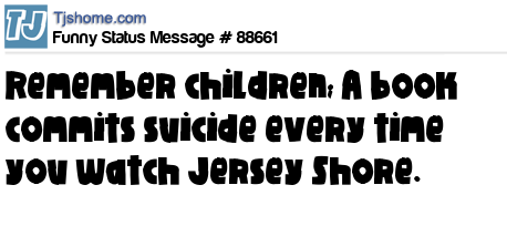 X says Remember children; A book commits suicide every time you watch Jersey Shore.