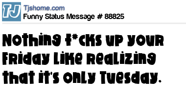 - # 105155 Nothing screws up your Friday more than realizing it's only Tuesday.