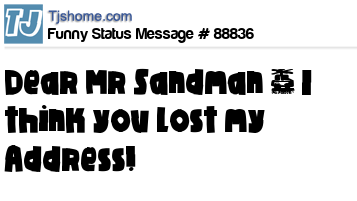 - # 88874 Dear Mr Sandman ~ I think you lost my address for some reason. If you want to bring me a dream you can deposit it in my bank account!!