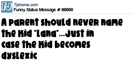 X says a parent should never name the kid "Lana"...just in case the kid becomes dyslexic