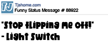 - # 18750 In my office there's a light switch that doesn't do anything... Every so often, I turn it on and off just to check. Yesterday, I got a call from a woman in Germany. She said, "Stop that!"