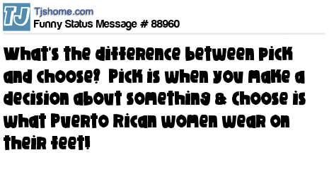 X What's the difference between pick and choose? Pick is when you make a decision about something & Choose is what Puerto Rican women wear on their feet!