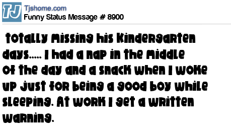 X is totally missing his Kindergarten days..... I had a nap in the middle of the day and a snack when I woke up just for being a good boy while sleeping. At work I get a written warning.