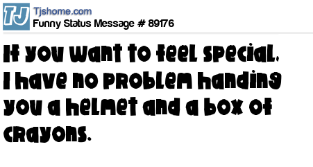 X says If you want to feel special, I have no problem handing you a helmet and a box of crayons.