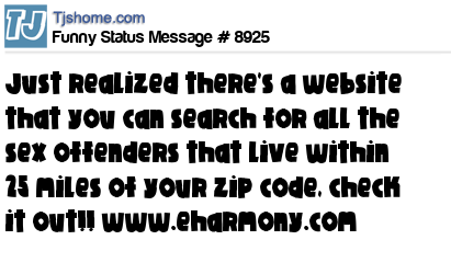 X has just realized there's a website that you can search for all the sex offenders that live within 25 miles of your zip code, check it out!! www.eharmony.com