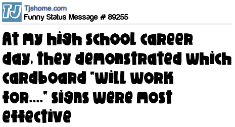 X is at my high school career day, they demonstrated which cardboard "will work for...." signs were most effective
