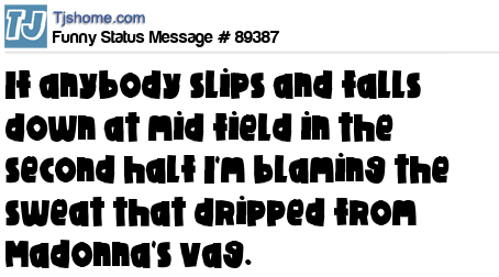 X is If anybody slips and falls down at mid field in the second half I'm blaming the sweat that dripped from Madonna's vag.