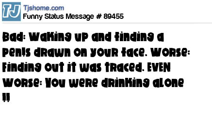 X is Bad: Waking up and finding a pen!s drawn on your face. Worse: Finding out it was traced. EVEN Worse: You were drinking alone !!