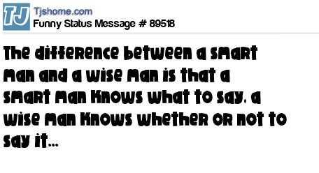 - # 92672 found the difference between being smart and wise: Smart is knowing what to say and wise is knowing whether or not to say it.
