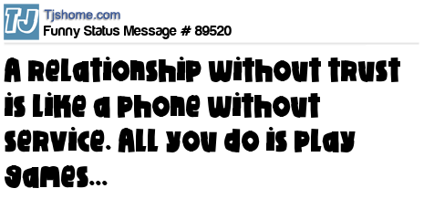- # 79212 A relationship without trust is like having a phone with no service & what you do with a phone w. no service ? You play games