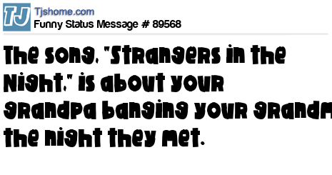X The song, "Strangers in the Night," is about your grandpa banging your grandma the night they met.