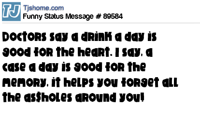 X is Doctors say a drink a day is good for the heart. I say, a case a day is good for the memory, it helps you forget all the as$holes around you!