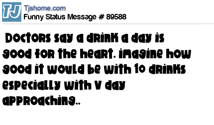 X is Doctors say a drink a day is good for the heart. imagine how good it would be with 10 drinks especially with V day approaching..