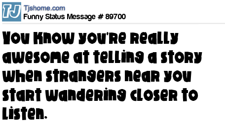 X You know you're really awesome at telling a story when strangers near you start wandering closer to listen.